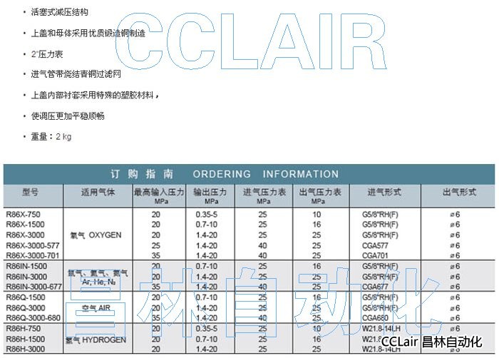 R86X-750,R86X-1500,R86X-3000,R86X-300-577,減壓器
