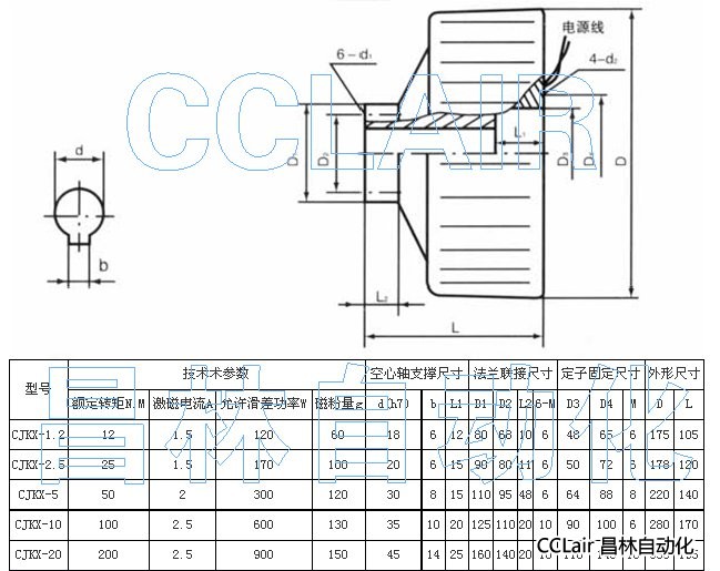 CJKX-1.2,CJKX-2.5,磁粉離合器(CJKX-型空心軸支撐、輸出、外殼旋轉式磁粉離合器)