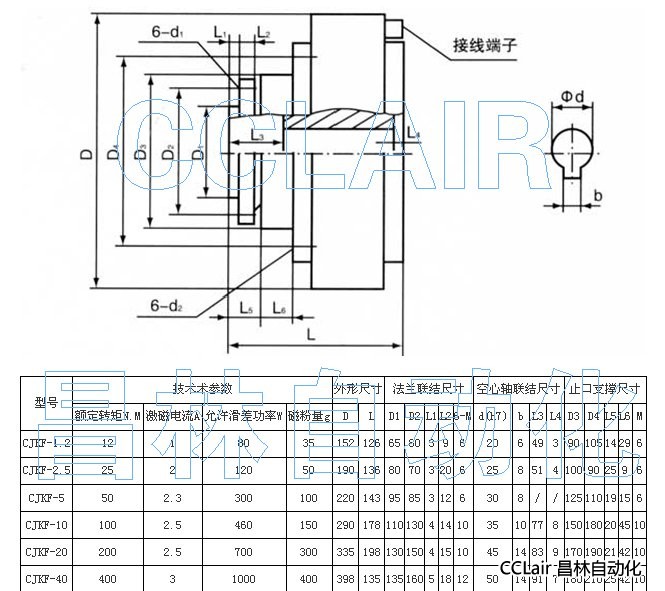 CJKF-1.2,CJKF-2.5,磁粉離合器(CJKF法蘭輸入、空心軸輸出止口支撐同側(cè)式、磁粉離合器)