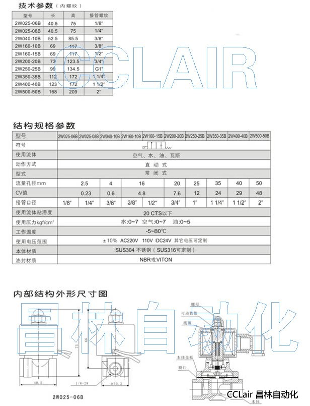 2W025-06B,2W025-08B,2W040-10B,2W160-10B,不銹鋼二位二通直動式電磁閥
