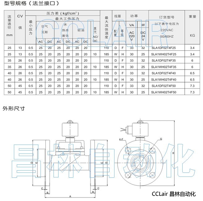 SLA1DF02T4F25,SLA1WH02T4F25,不銹鋼法蘭二位二通電磁閥(常閉型)