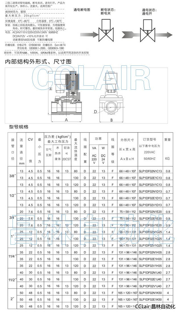 SLP1DF02N1H35,SLP1DF02E1H35,銅系列二位二通電磁閥(常閉型)