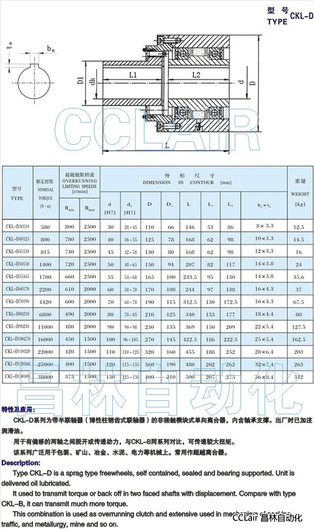 CKL-D30110,CKL-D40125,CKL-D45130,CKL-D50150,CKL-D55165,CKL-D60170,單向離合器 |
