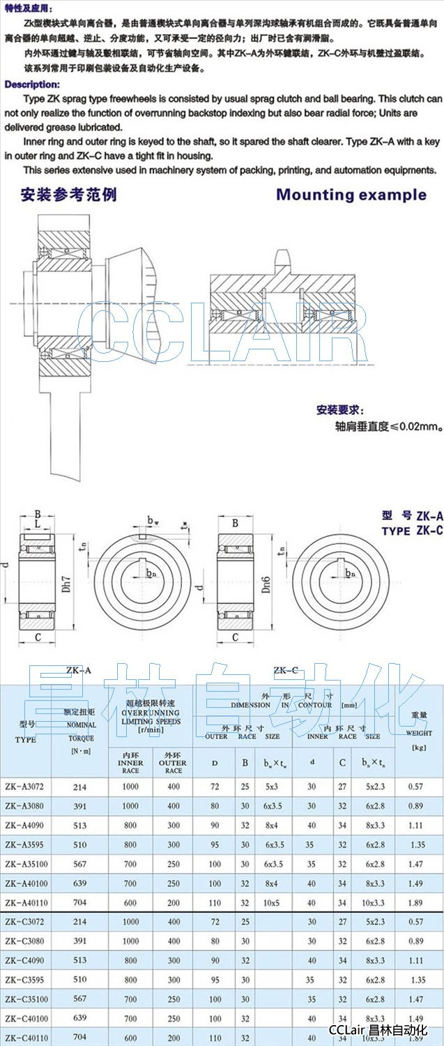 ZK-A3072,ZK-A3080,ZK-A4090,ZK-A3595,ZK-A35100,ZK-A40100,ZK-A40110, 單向離合器 |