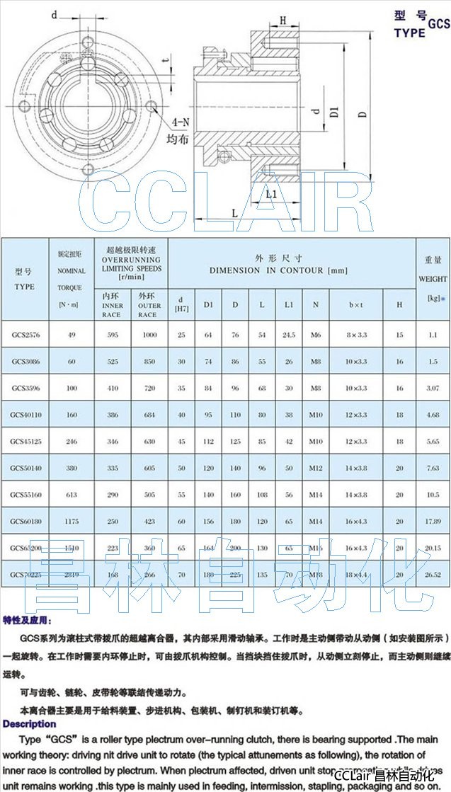 GCS2576,GCS3086,GCS3596,GCS40110,GCS45125,GCS50140,GCS55160,單向離合器 |
