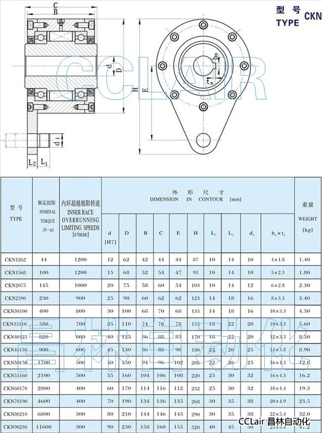 CKN1262,CKN1568,CKN2075,CKN2590,CKN30100,CKN35100,CKN40125,單向離合器 |