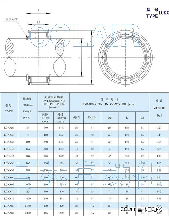 LCKX25,LCKX30,LCKX35,LCKX40,LCKC45LCKX50,LCKX55,LCKX60,LCKX65,單向離合器 |