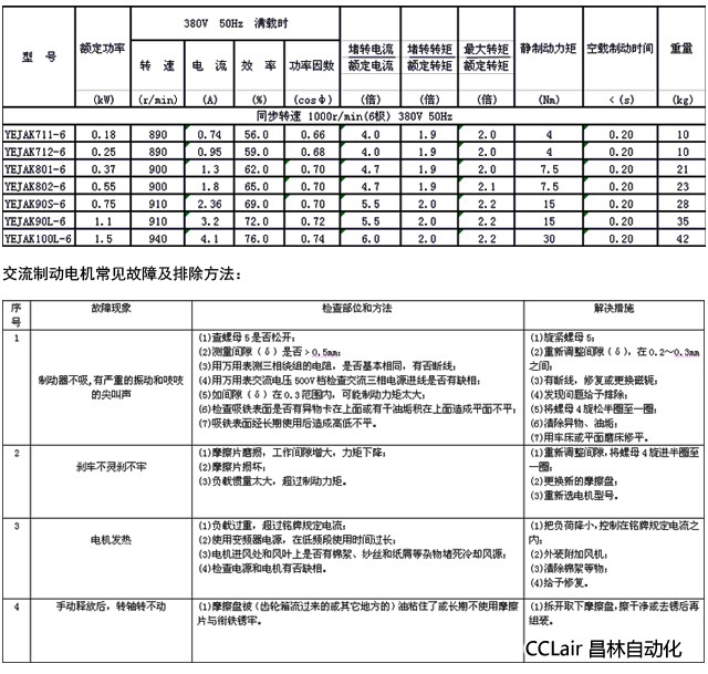 2、額定電壓380V 50Hz(交流制動器與電動機相同);