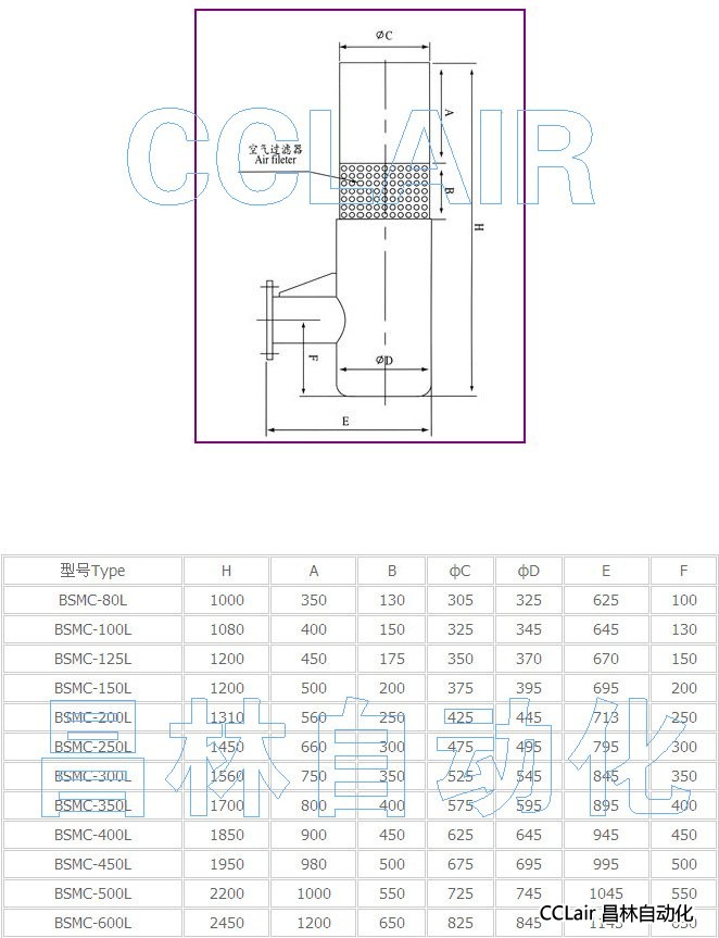 BSMC-80L,BSMC-100L,BSMC-125L,BSMC-150L,BSMC-200L,BSMC-250L,入口消音器