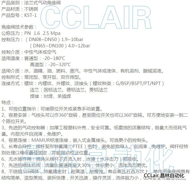 KST-1,法蘭式氣動(dòng)角座閥