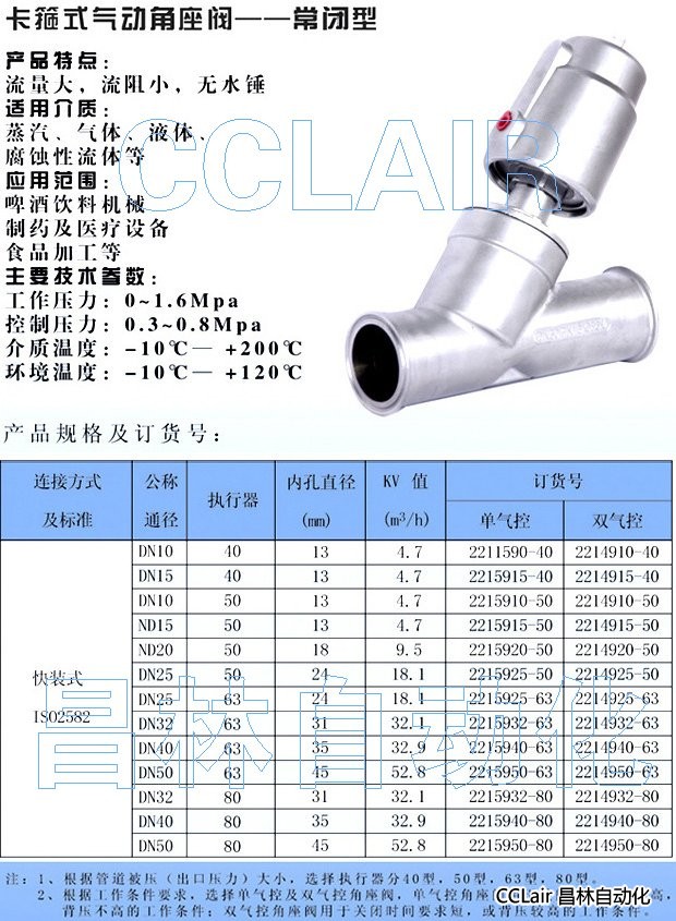 2211590-40,2215915-40,2214910-40,2214915-40,2215910-50,卡箍式氣動(dòng)角座閥