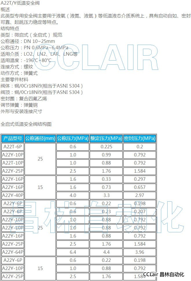 A22T-6P-DN25,A22Y-10P-DN25,A22T-10P-DN25,A22Y-25P-DN25,低溫安全閥