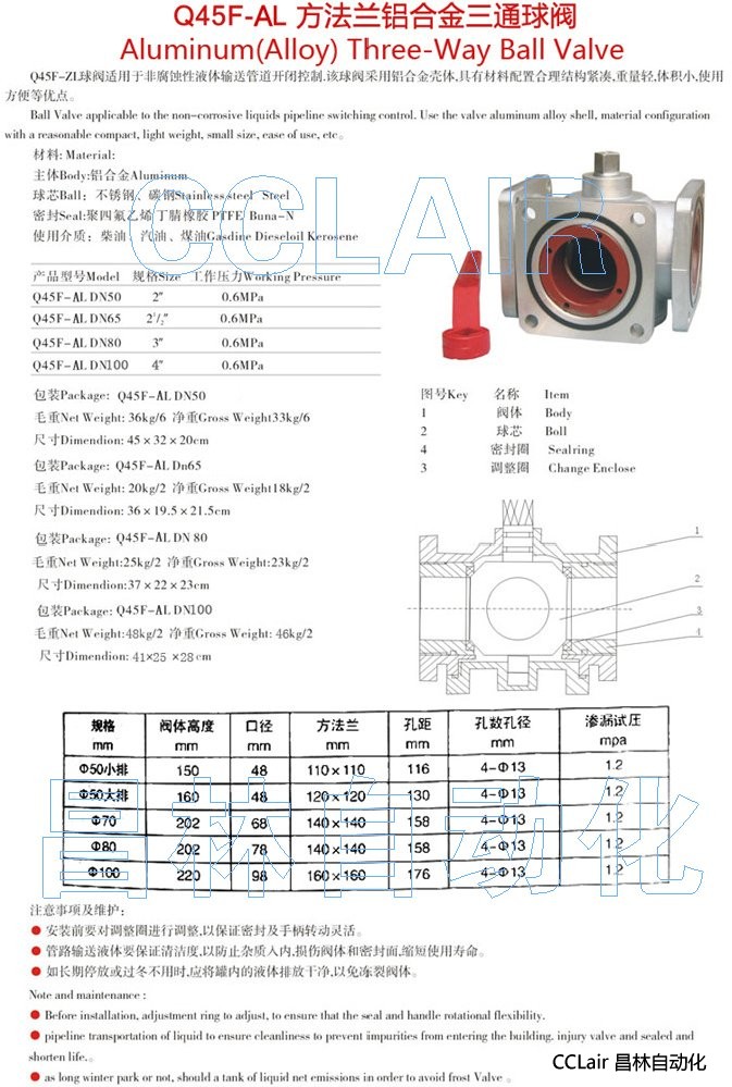 Q45F-AL-DN50,Q45F-AL-DN65,Q45F-AL-DN80,Q45F-AL-DN100,鋁合金三通球閥 |