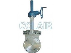 型號: PZ573-0.6-DN50,PZ573-0.6-DN60,PZ573-1.0-DN50,PZ573-1.0-DN60,傘齒輪對夾式刀型閘閥
