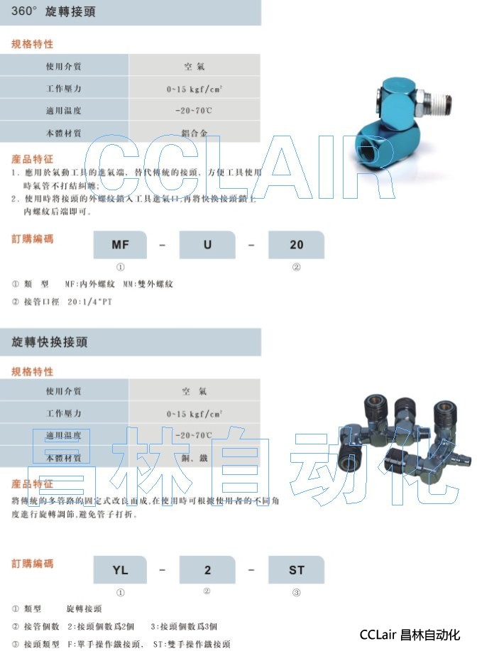 MF-U-20,MM-U-20,YL-2-ST,YL-3-ST,YL-2-F,YL-3-F,旋轉接頭