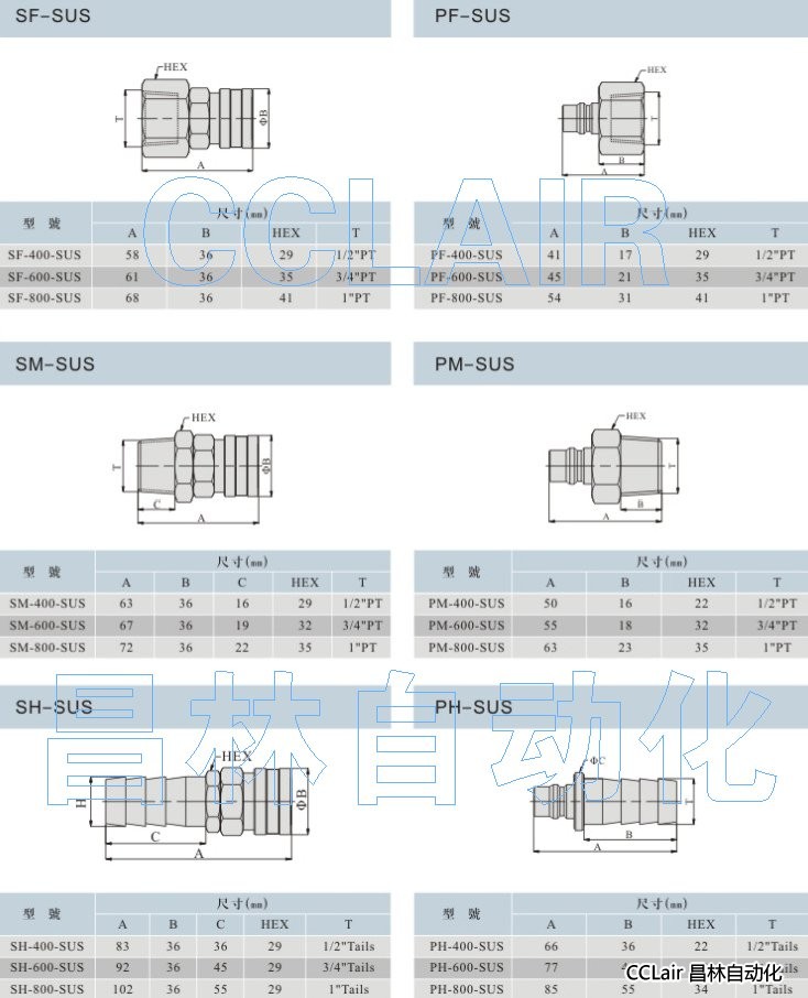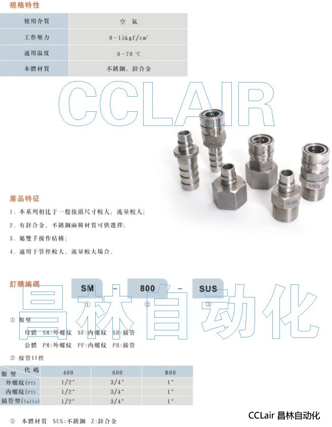 SF-400-SUS,PF-600-SUS,SM-400-SUS,PM-400-SUS,PH-600-SUS,SH-800-SUS,大流量快換接頭