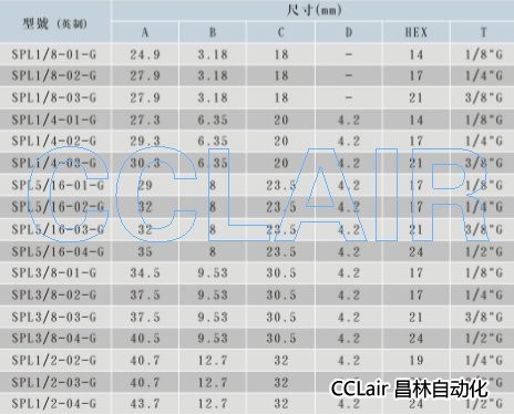 SPL1/8-01-G,SPL1/8-02-G,SPL1/4-02-G,SPL5/16-01-G,SPL3/8-01-G,SPL1/2-04-G,接頭