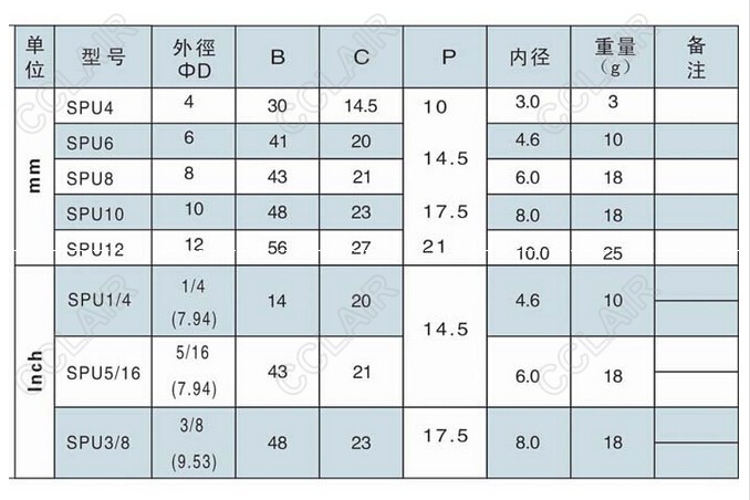 SPU4,SPU6,SPU8,SPU10,SPU12,SPU1/4,SPU5/16,SPU3/8,