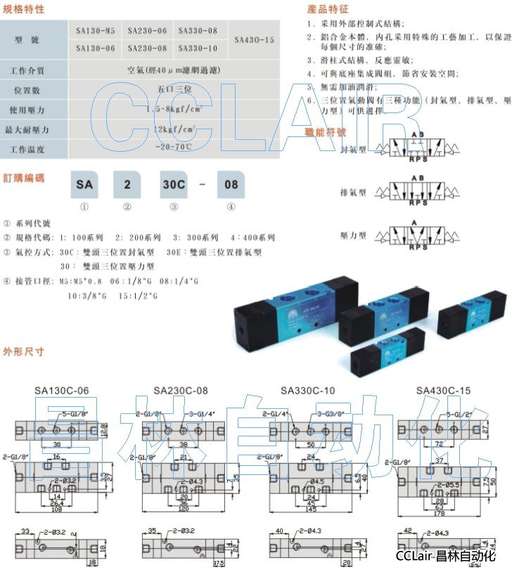 SA130-M5,SA430-15,SA130-06,SA230-06,SA330-06,SA430-06,SA130-08,雙頭三位氣動(dòng)閥