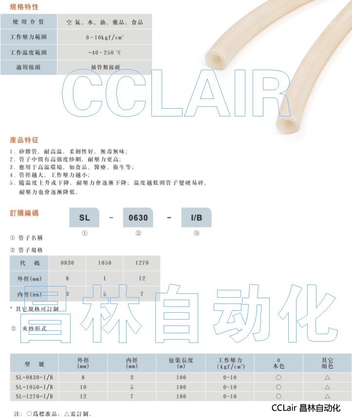 SL-0830-I/B,SL-1050-I/B,SL-1270-I/B,硅膠內(nèi)夾紗管SL管