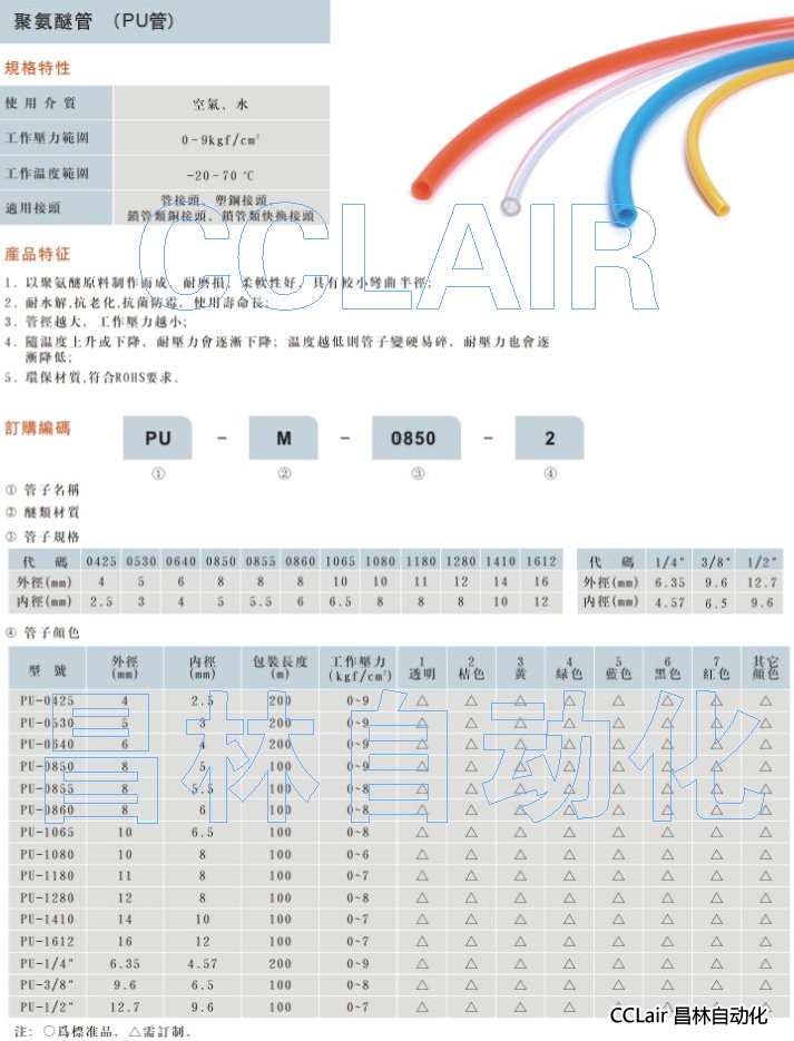 PU-M-0425-1,PU-M-0530-1,PU-M-0640-1,PU-M-0850-1,PU-M-0855-1,PU管