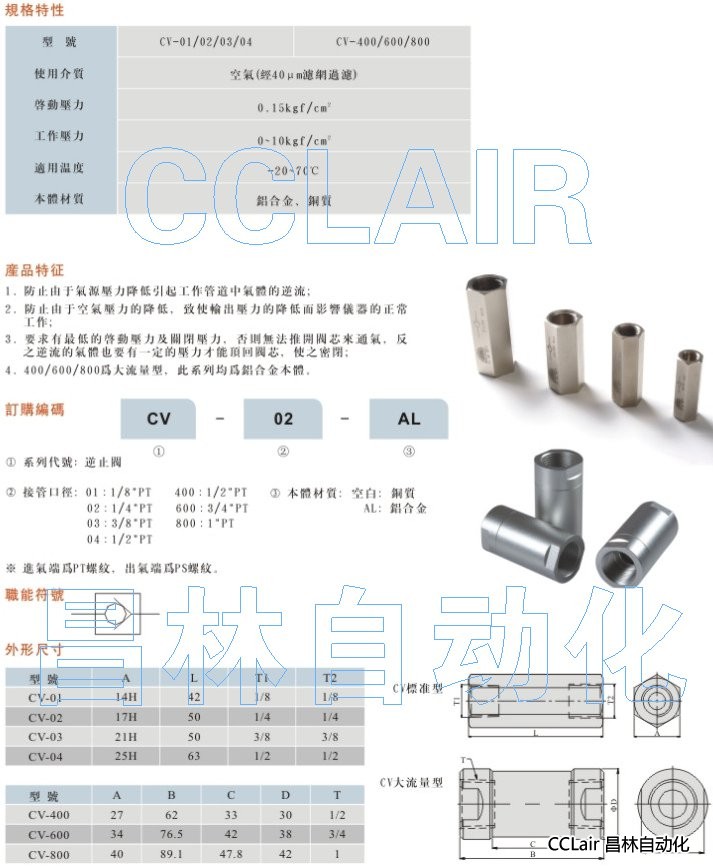 CV-01-AL,CV-02-AL,CV-03-AL,CV-04-AL,CV-400-AL,CV-600-AL,CV-800-AL,逆止閥