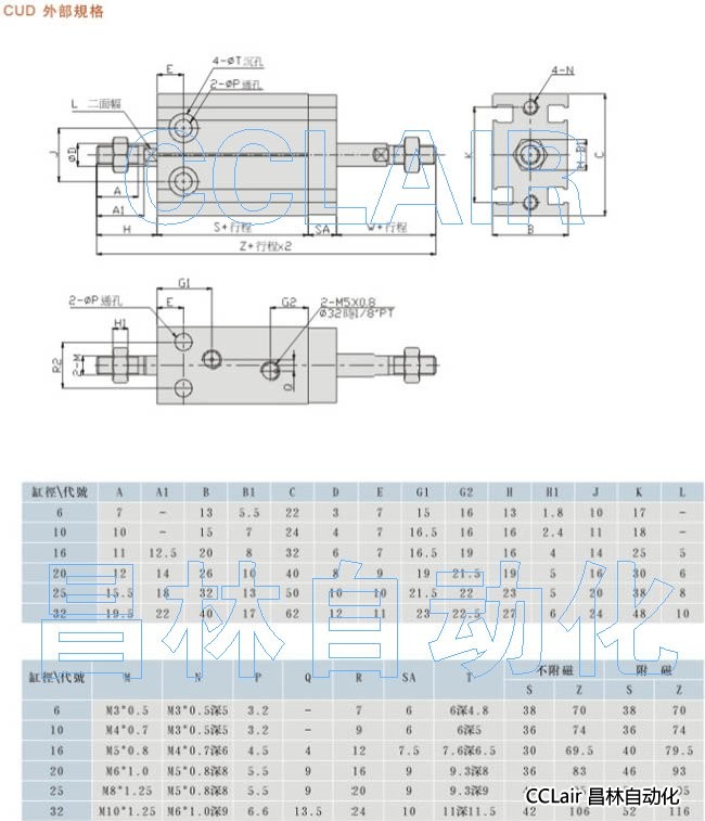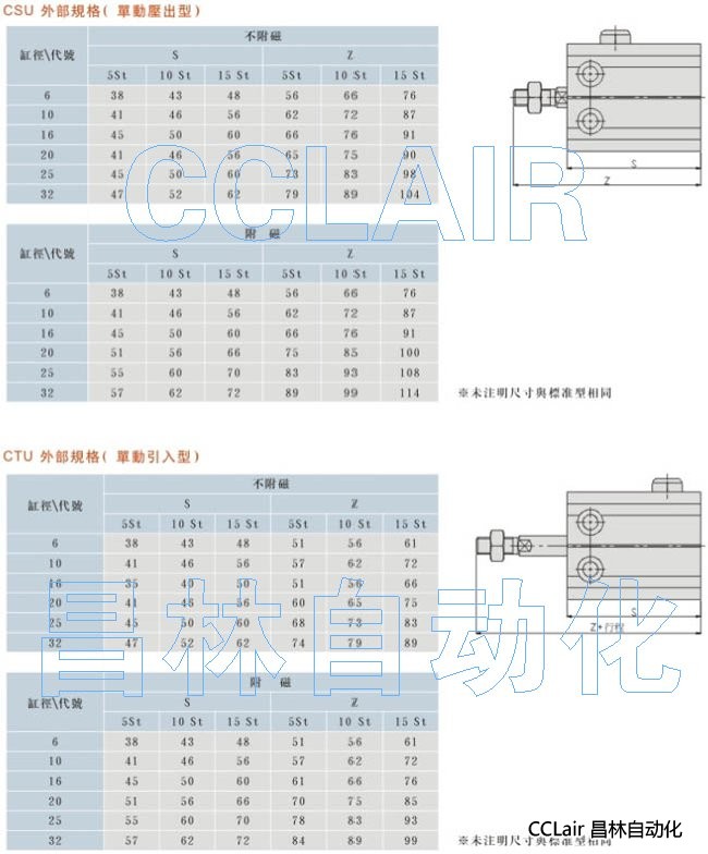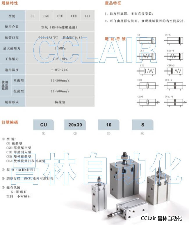 CU-20X30-S,CSU-20X30-S,CTU-20X30-S,CUD-20X30-S,CUJ-20X30-10-S,自由安裝氣缸