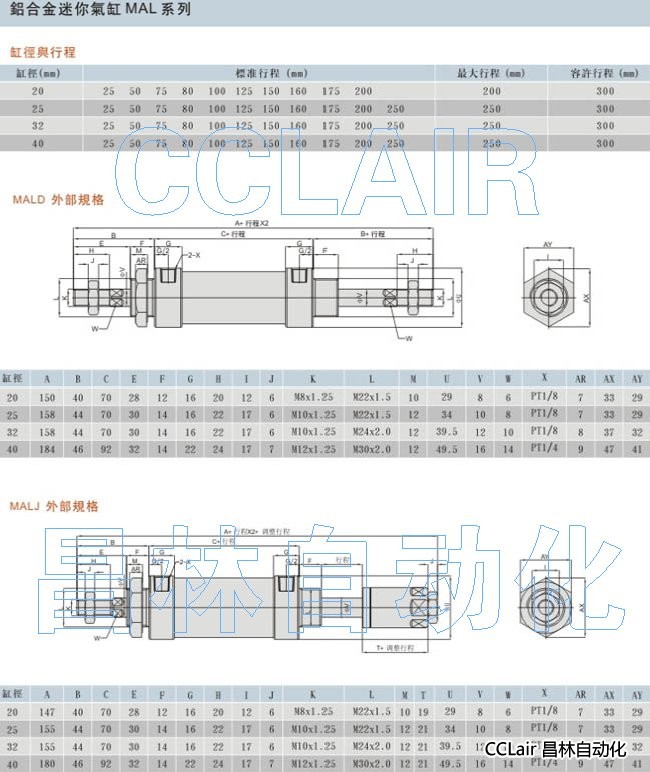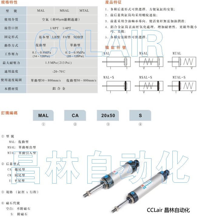 MSAL-CA20X50,MSAL-CA20X75,無錫昌林,MSAL-CA20X80,MSAL-CA20X100,MSAL-CA20X125,
