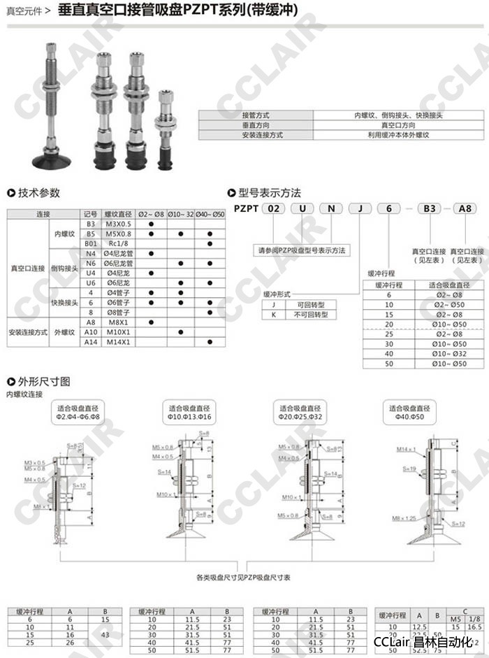 PZPT13BK6,PZPT16BK6,PZPT20BK6,PZPT25BK6,PZPT32BK6,PZPT40BK6垂直真空口接管吸盤