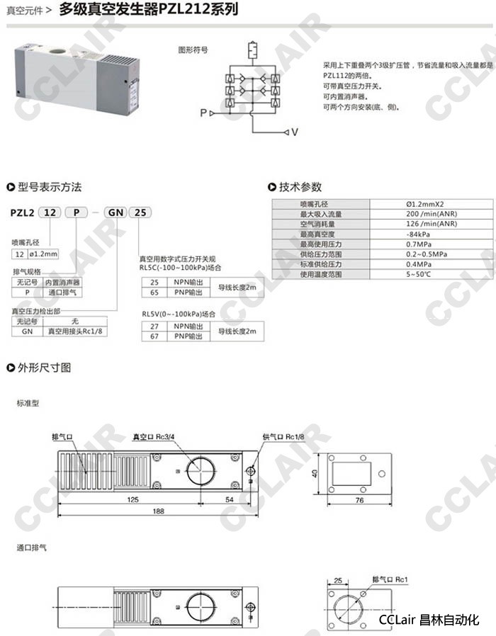 PZL212-25,PZL212P-25,PZL212-GN25,PZL212P-GN25,多級(jí)真空發(fā)生器