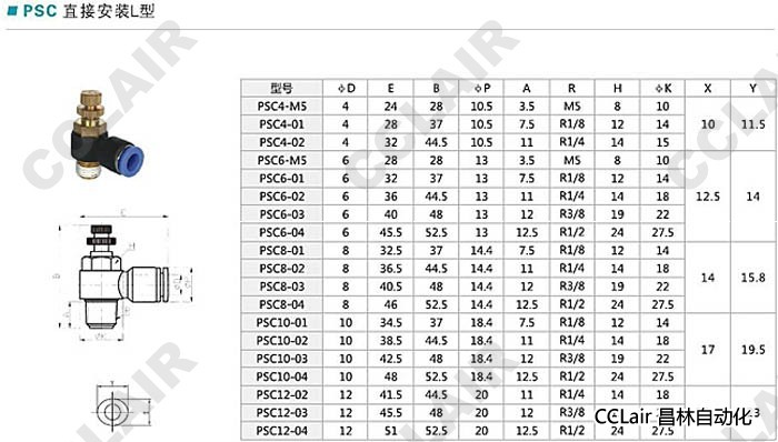 PSC4,PSC6,PSC8,PSC10,PSC12,直接安裝L型接頭