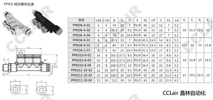 PPKD6,PPKD8,PPKD10,PPKD12,減徑螺紋五通接頭