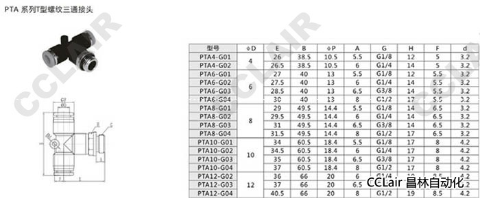 PTA4,PTA6,PTA8,PTA10,PTA12,T型螺紋三通接頭