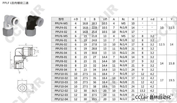 PPLF4,PPLF6,PPLF8,PPLF10,PPLF12,L型內(nèi)螺紋二通接頭