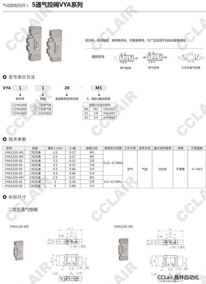 VYA1120-01,VYA1220-01,VYA1320-01,VYA2120-01,VYA2220-01,VYA2320-01,5通氣控閥