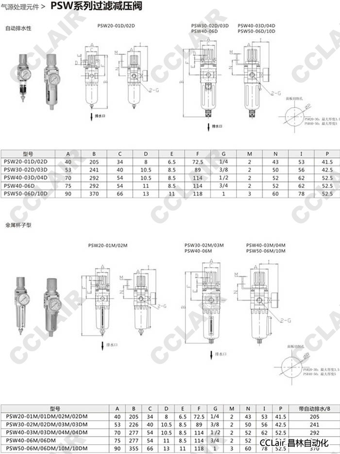 PSW50-MS,PSW50-01,PSW50-02,PSW50-03,PSW50-04,PSW50-06,PSW50-10,氣動過濾減壓閥