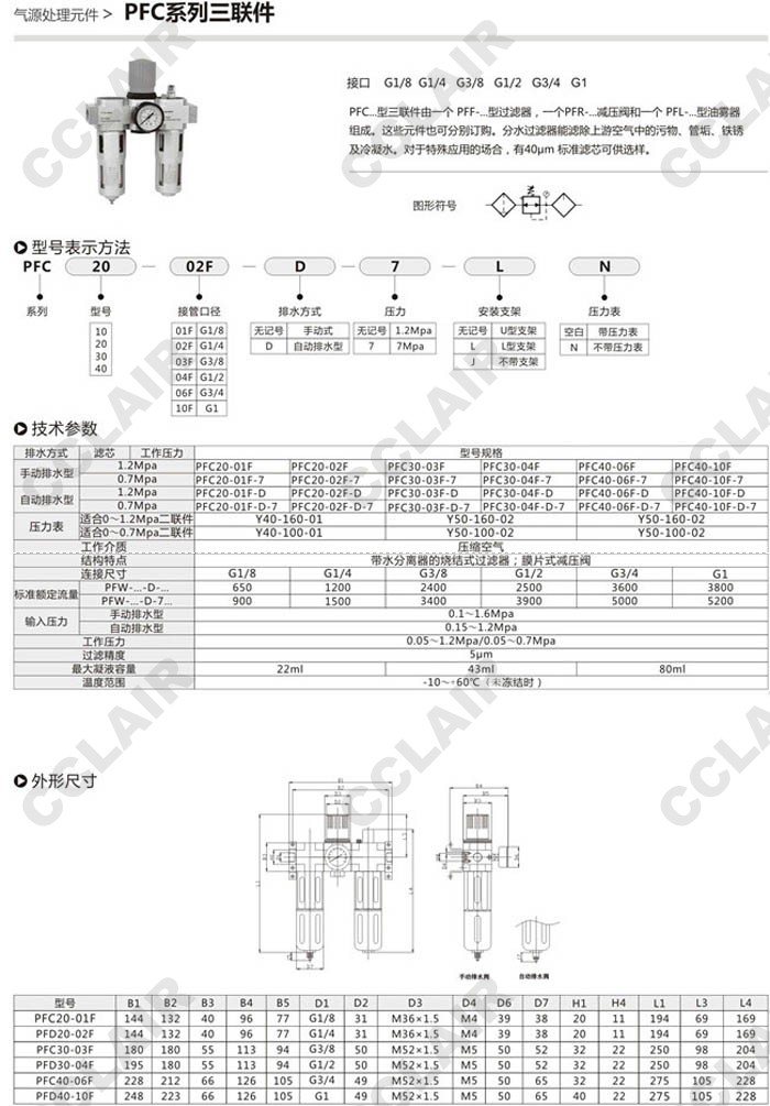 PFC30-01F,PFC30-02F,PFC30-03F,PFC30-04F,PFC30-06F,PFC30-10F,氣動三聯(lián)件