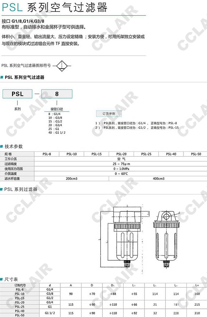 PSL-8,PSL-10,PSL-15,PSL-20,PSL-25,PSL-40,PSL-50,空氣過(guò)濾器