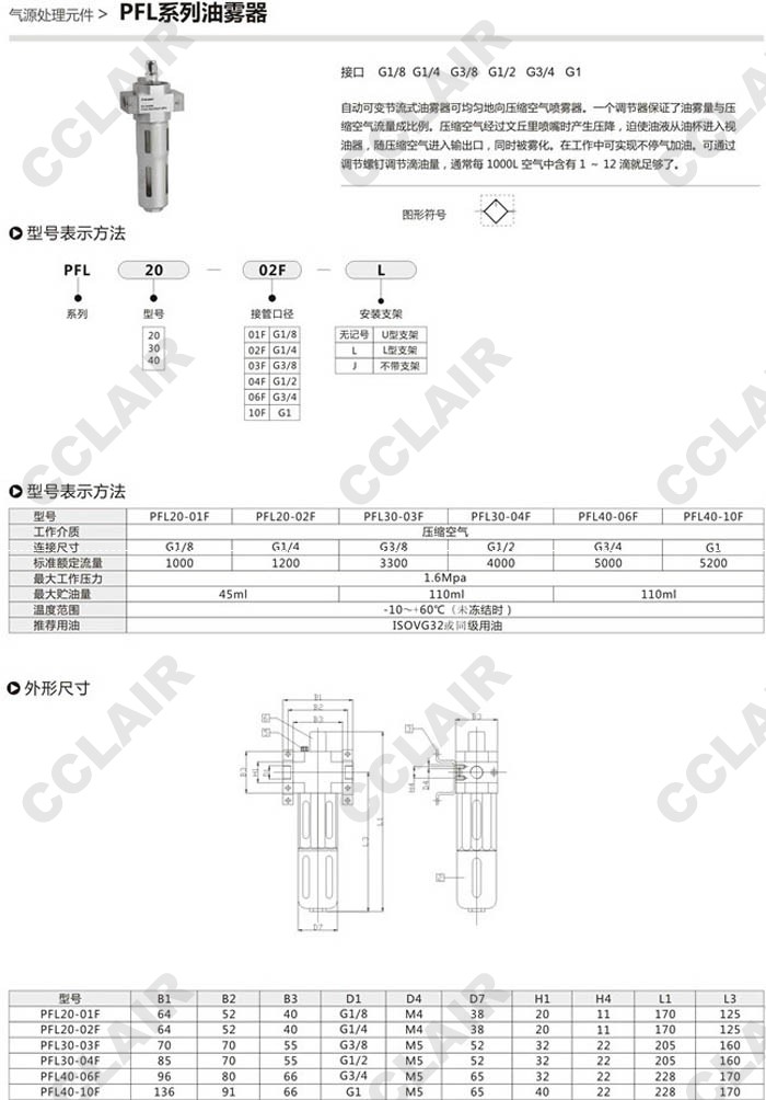 PFL40-01F,PFL40-02F,PFL40-03F,PFL40-04F,PFL40-06F,PFL40-10F,氣動油霧器