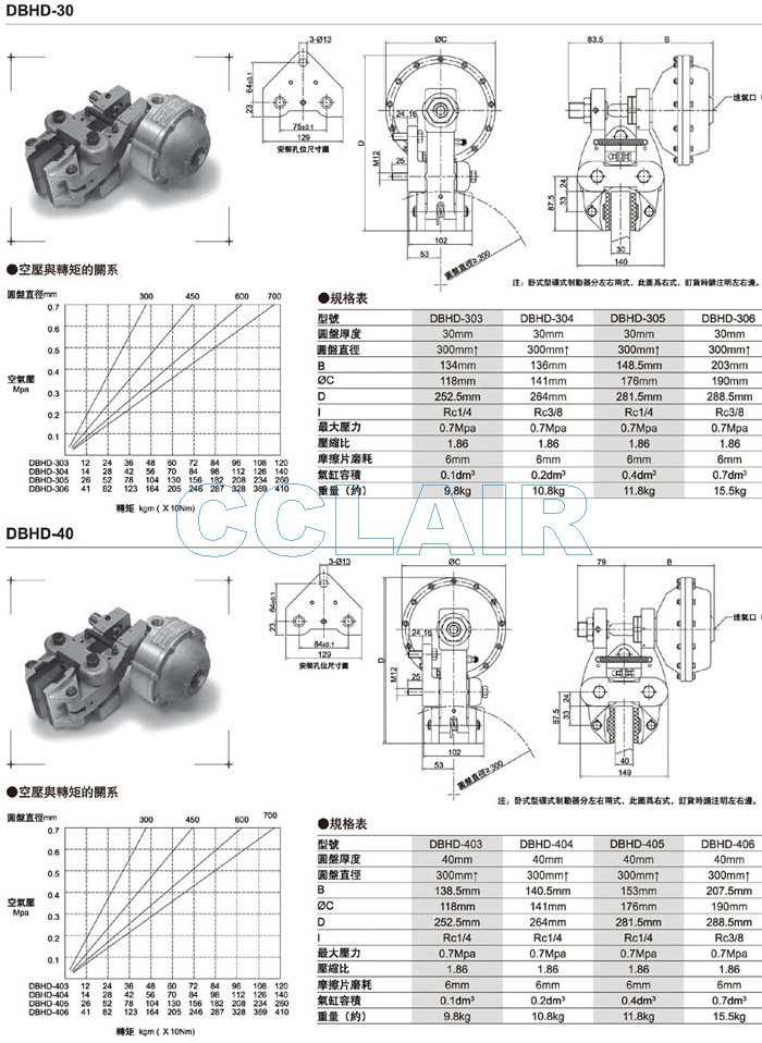DBHD-255,DBHD-256,DBHD-303,DBHD-304,DBHD-305,DBHD-306空壓碟式制動器 |