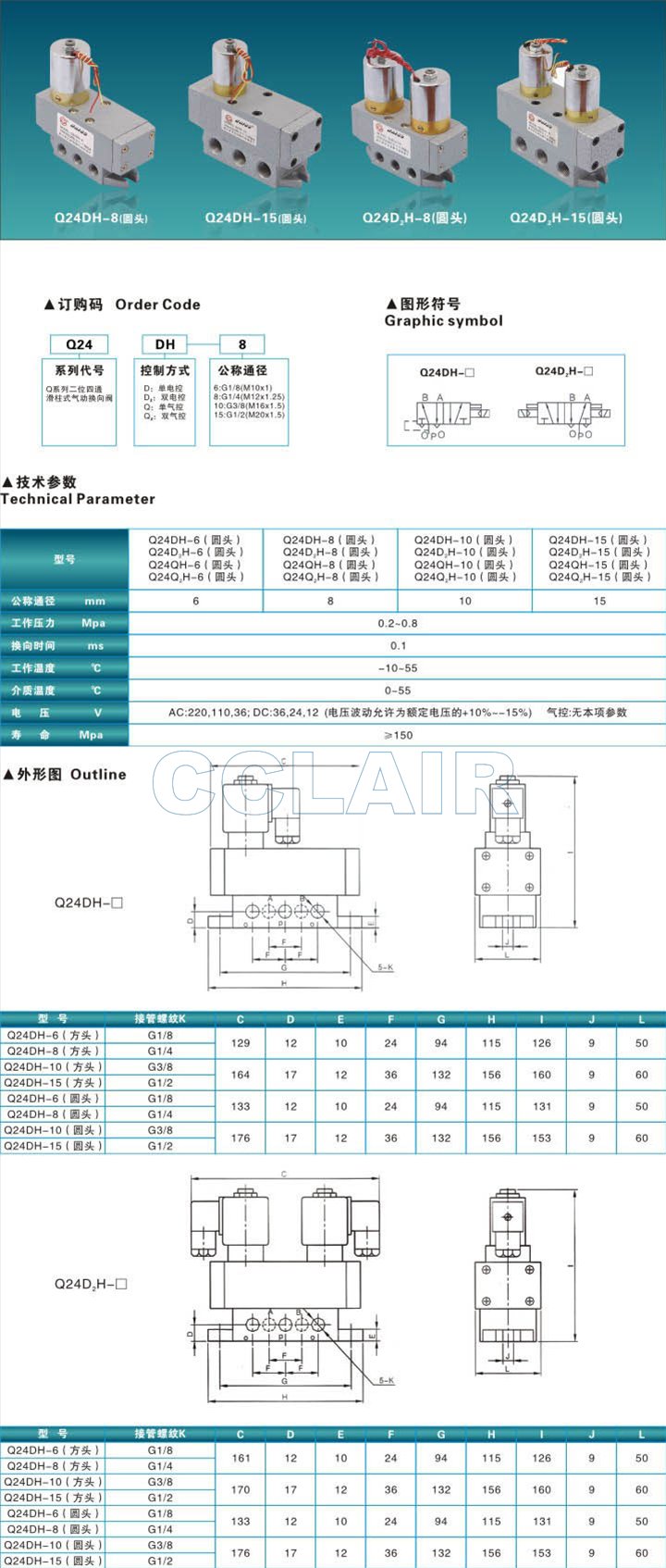 Q24QH-6,Q24QH-8,Q24QH-10,Q24QH-15,Q24Q2H-6,Q24Q2H-8,Q24Q2H-10,Q24Q2H-15,滑柱式換向閥 (圓頭) |