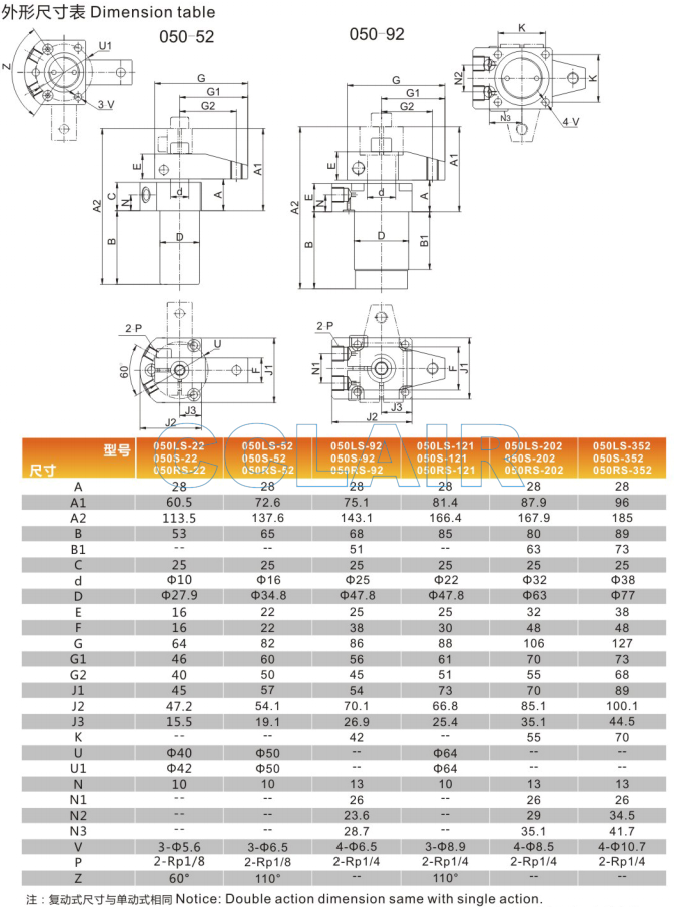 050LS-22,050LS-52,050LS-92,050S-92,050S-121,050RS-121,050RS-202,050RS-352,上法蘭高壓轉(zhuǎn)角缸,
