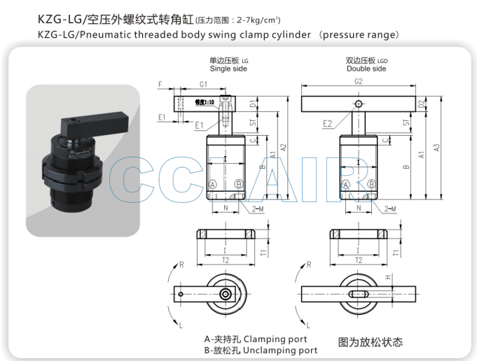 KZG-LG32,KZG-LG40,KZG-LG50,空壓外螺紋式轉(zhuǎn)角缸,無(wú)錫昌林