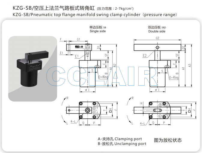 KZG-SB32,KZG-SB40,KZG-SB50,KZG-SB63,空壓上法蘭氣路板式轉(zhuǎn)角缸