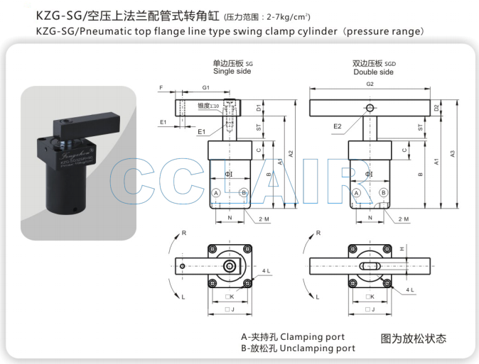 KZG-SG32,KZG-SG40,KZG-SG50,KZG-SG63,空壓上法蘭配管式轉角缸