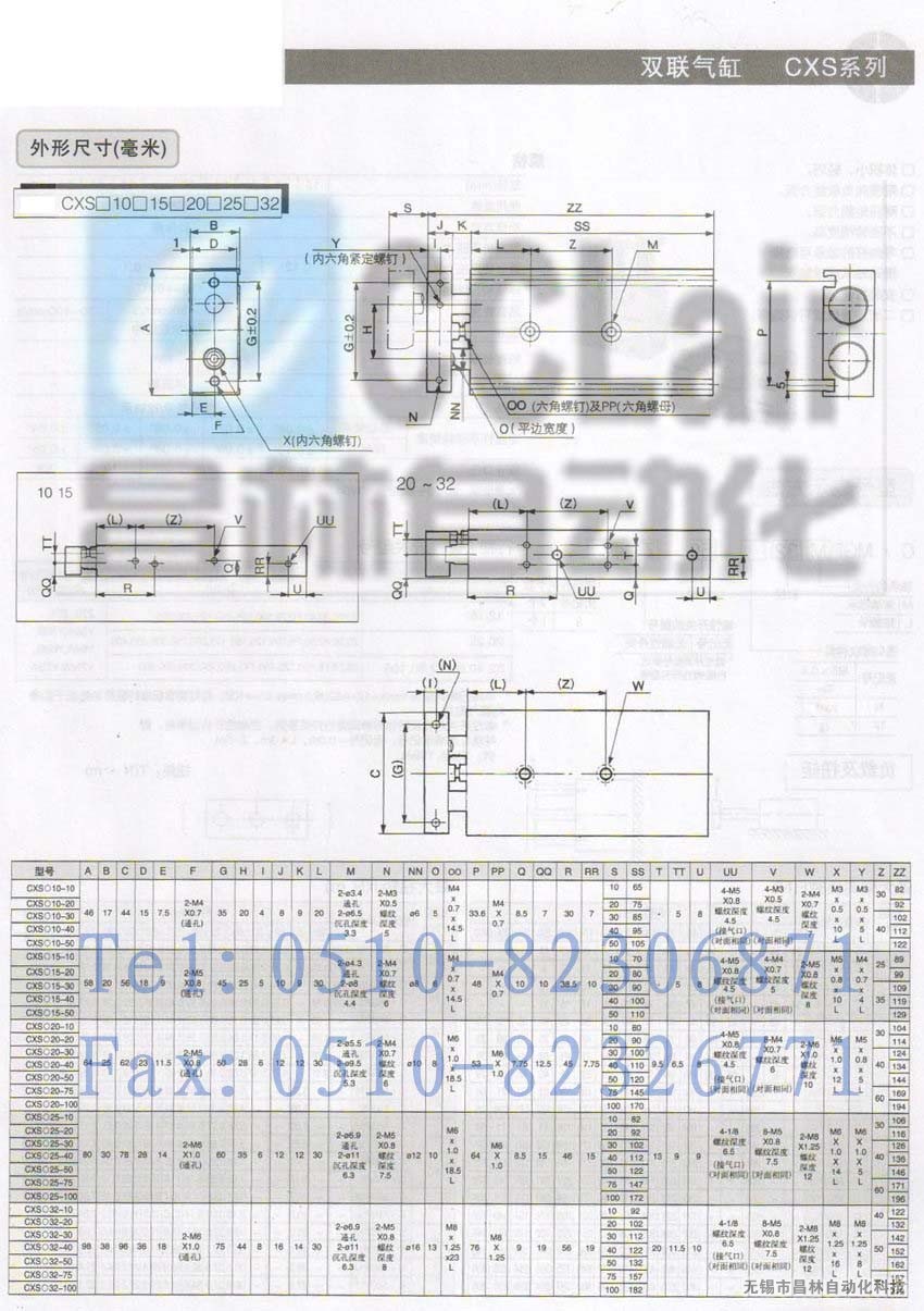 CXSL20-75-Z76,CXSL20-75-Y59A,CXSL20-75-Y59B,雙聯(lián)氣缸,