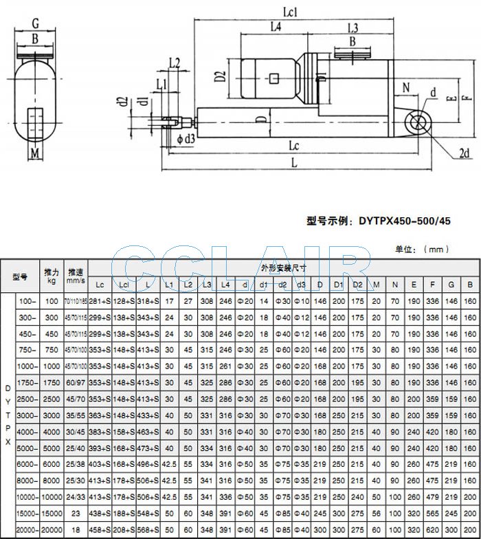 DYTPX100,DYTPX300,DYTPX450,DYTPX750,DYTPX1000,DYTPX1750,DYTPX2500,DYTPX3000,電液推桿 |