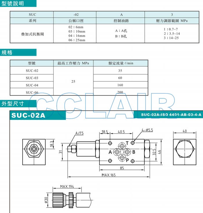 SUC-02A,SUC-03A,SUC-04A,SUC-06A,SUC-02B,SUC-03B,SUC-04B,疊加式抗衡閥 |