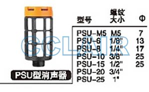 PSU-M5,PSU-6,PSU-8,PSU-10,PSU-15,PSU-20,PSU-25,塑料消聲器