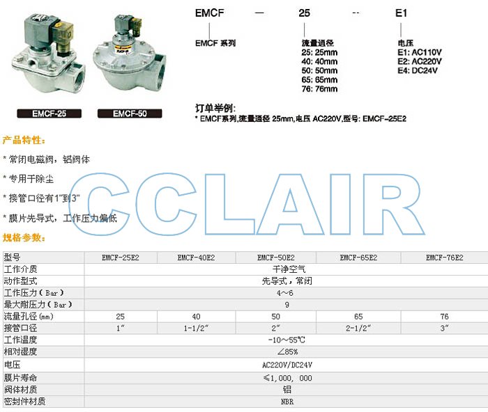 EMCF-25E1,EMCF-40E1,EMCF-50E2,EMCF-65E2,EMCF-65E4,EMCF-76E4,脈沖閥